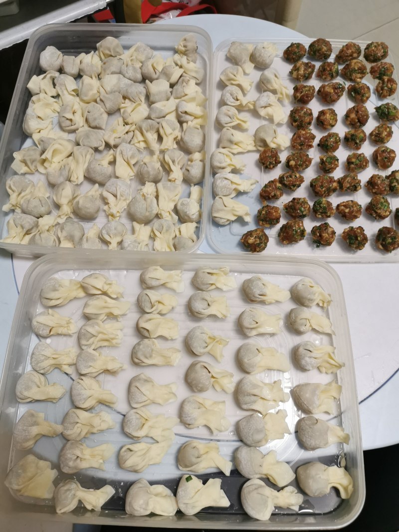4:按自己喜欢的样式包成馄饨就可以了。多余的肉馅儿可以做成肉圆子吃。