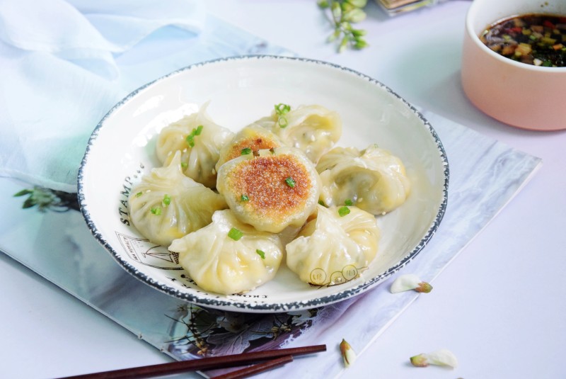7:煎锅热油,先放入饺子煎至底部焦黄。