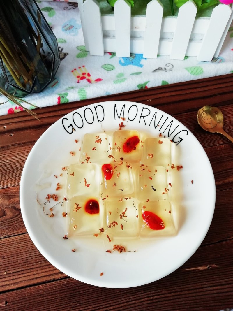 8:做好的桂花冻,可参考我之前的菜谱:自制桂花冻。