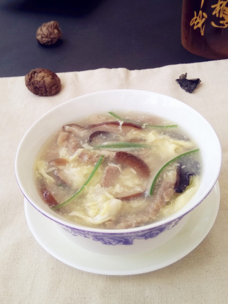 里脊肉100g;香菇60g;黑木耳30g;鸡蛋110g;