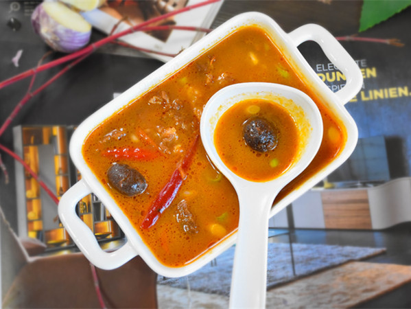 9:放入牛肉中小火煲熟,起锅前15分钟左右放入盐。