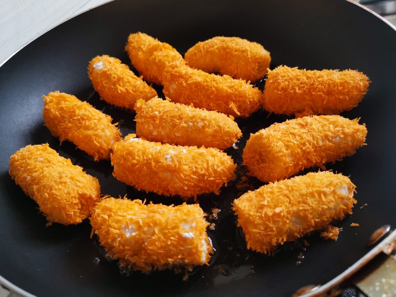 1、油温的把控。2、顺序步骤:先裹蛋液,再裹蛋糕粉,再一次裹蛋液,最后裹上面包糠。3、步骤进行中尽量用筷子夹住进行裹的步骤。干净卫生吃的放心。