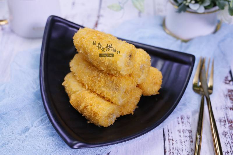 4:香蕉在鸡蛋液中滚一圈,然后裹面包屑。