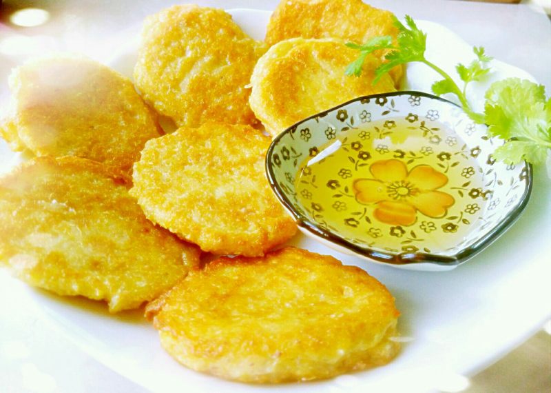 2:我是用一个圆形的模具定型了玉米粒,脱离模具后在加热过油的平底锅上炸好的。非常简单,用模具对我这种手艺不利索的人来说不会散,朋友们,试试吧!