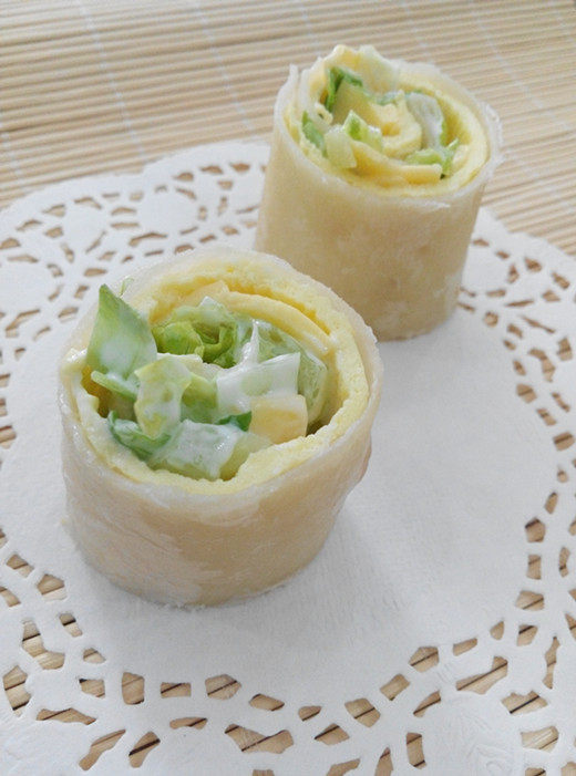 1:卷饼,先用不沾锅稍为加热,也可以用蒸锅蒸热