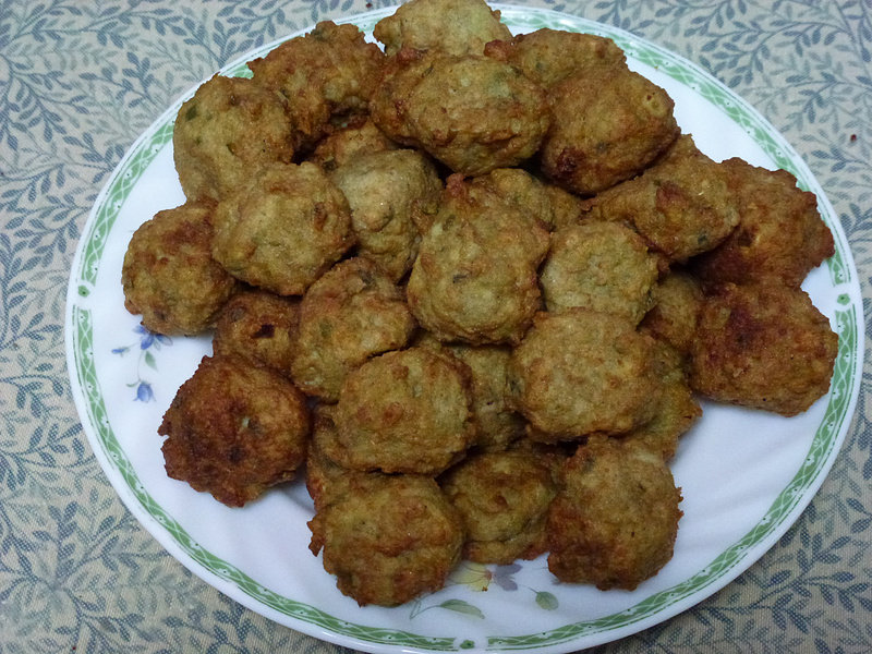 2:炸好的绿豆面丸子备