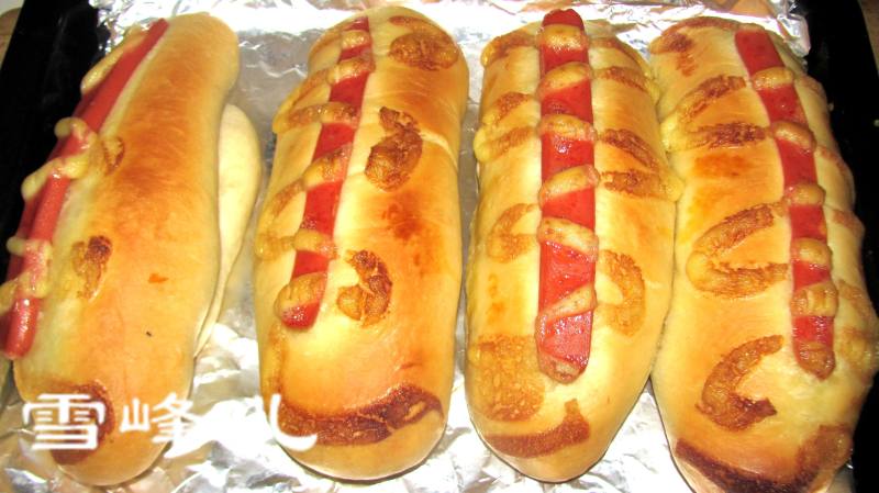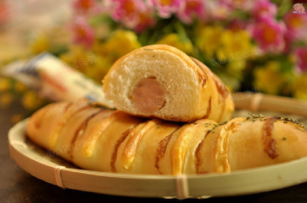 1.原材料放入面包桶的顺序是先液体后固体。2.盐和酵母不要直接接触,可以把盐放在面粉上。3.用面包机揉面一般用两次快速和面程序就可以揉出手套膜。(大概需要40分钟)4.将面团搓成长条的时候,面团必须得到足够时间的中间醒发,否则容易回缩。如果在搓的时候面团仍旧回缩厉害,不易搓长,可以放置松弛一会儿以后再继续搓长。5.如果想制作两头的火腿肠都露出来的热狗卷外形,则卷的时候两边的火腿肠必须露出2.5CM以上,发酵以后才不会盖住火腿肠。6.烘烤的温度和时间,请根据自家面包机的脾气决定。