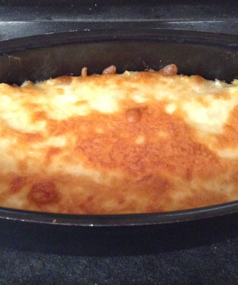 10:芝士忘记拍了。(均匀的撒上马苏里拉奶酪丝,烤箱预热10分钟上下火160°。放入之后上火160°,下火140°烤15分钟即可。