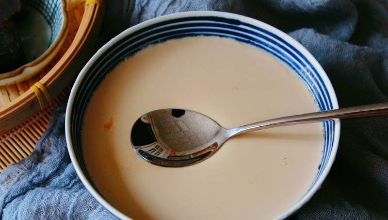 4:红糖姜撞奶完成~红糖混合着姜的香气,闻起来非常醒神。