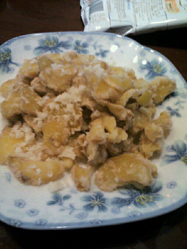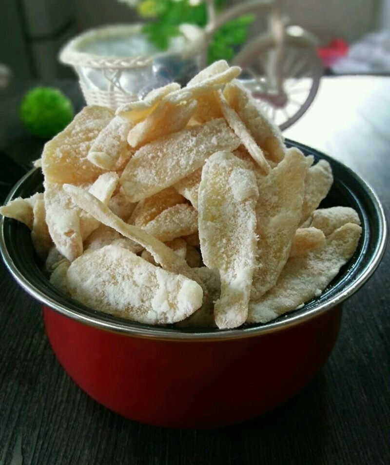 2:切成2-3毫米的姜片,放水里浸泡数小时,中间换几次水去辣味不泡太辣了,原谅我忘了拍泡姜的图
