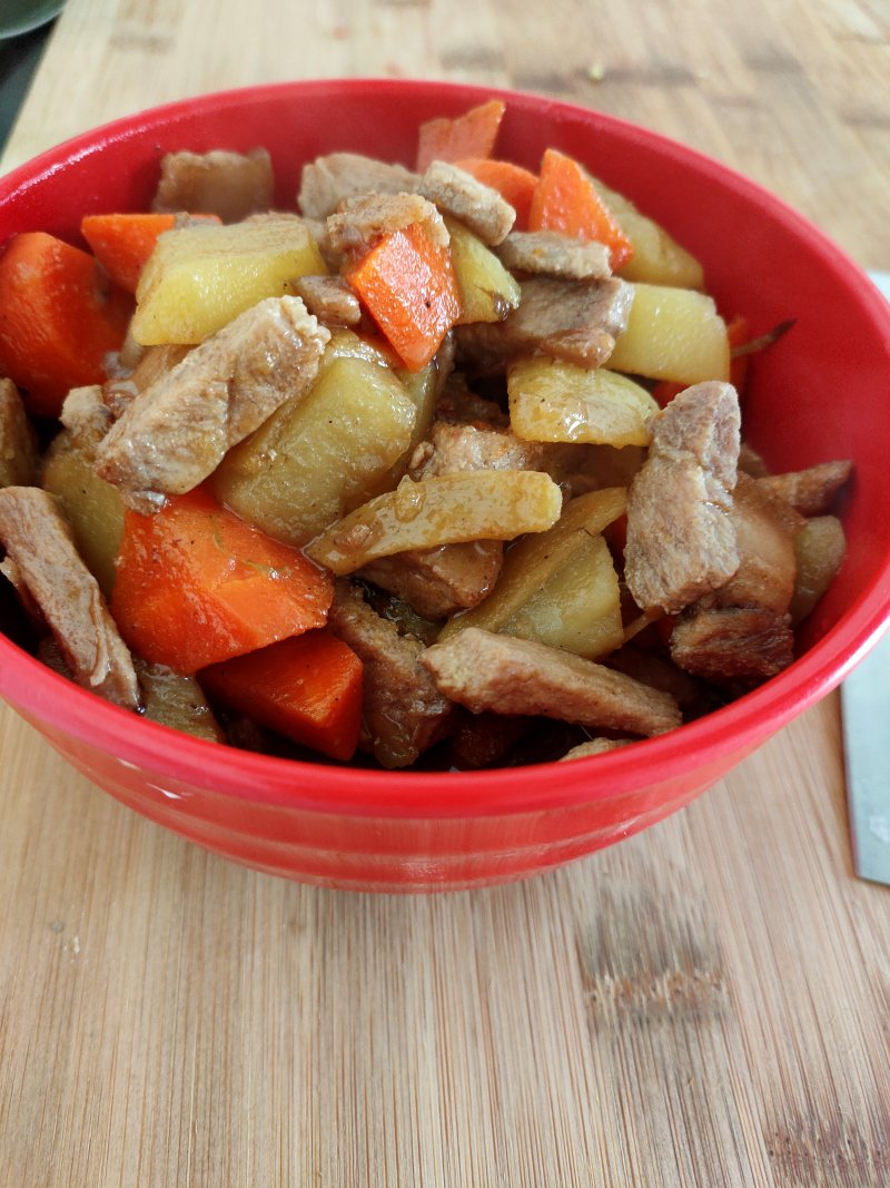 6:土豆去皮切滚刀块,放入锅中再烧20分钟即可。