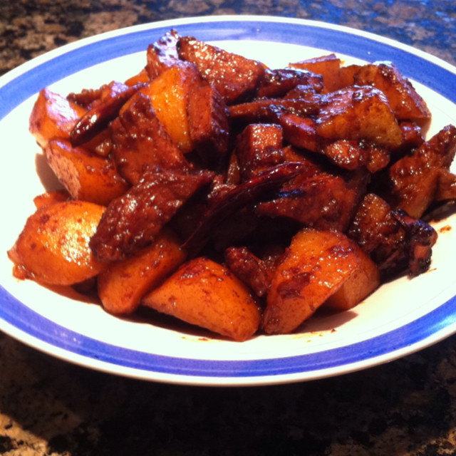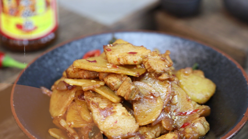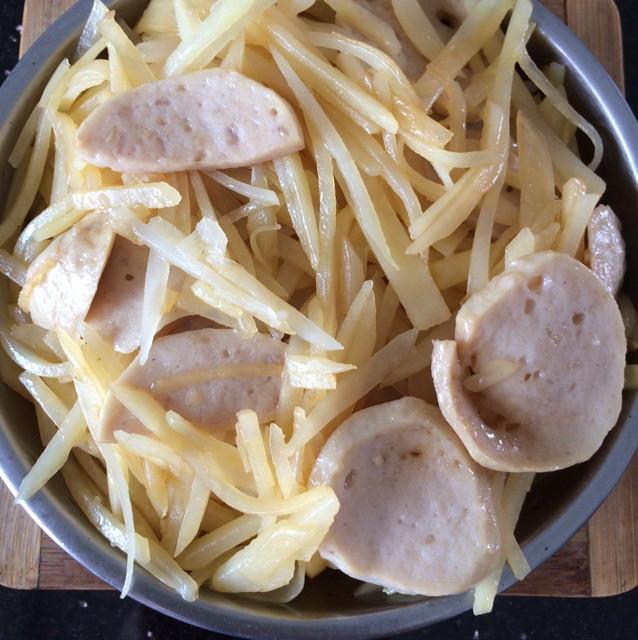 1:土豆切片、热油下锅炒至表面脆黄盛出备用。