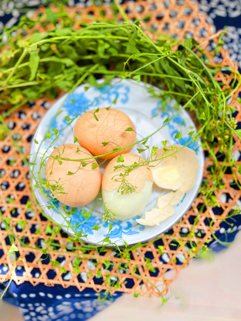 8:可热吃,也可凉吃,剥开后鸡蛋上还有淡淡的花纹,很漂亮。