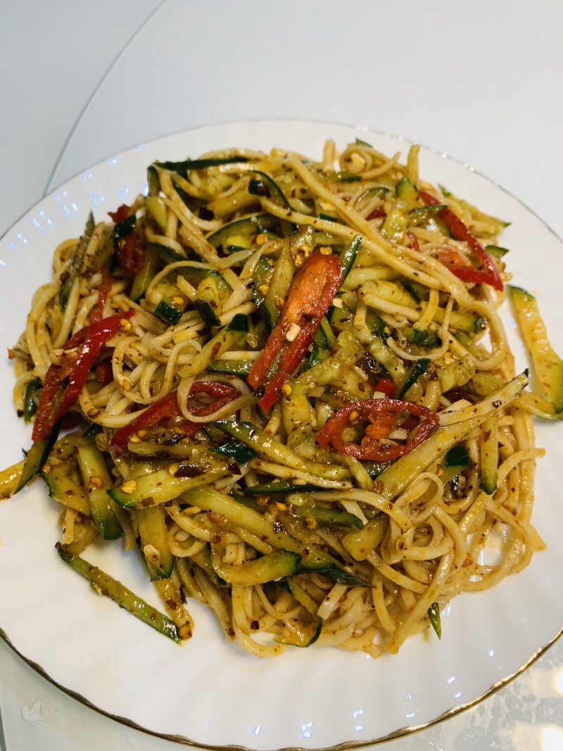 3:煮面:沸水下锅,煮断生立即起锅。(煮1-2分钟即可,时间太久,面容易坨,凉面口感不劲道)