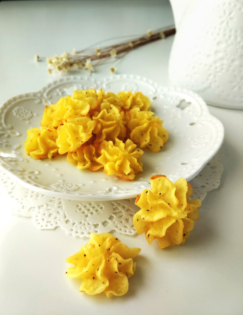 做好的土豆泥曲奇整体还是软糯口感哦,只有边边有点酥脆。