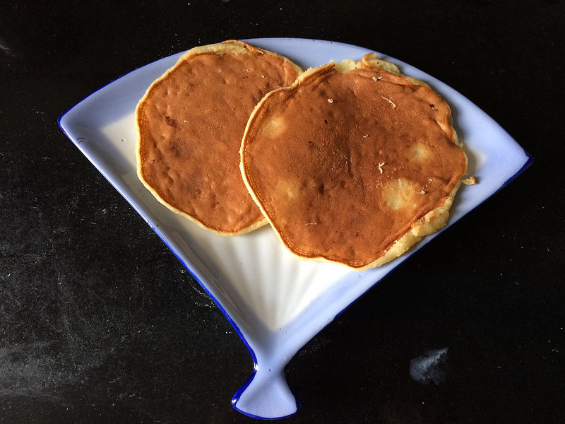 煎松饼的火不要太大,大了松饼容易糊,这个份量做出来刚好一盘,可以翻倍做。