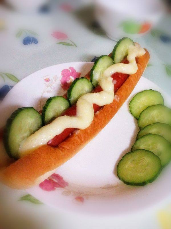 黄瓜1根;奶棒面包1根;火腿肠1根;