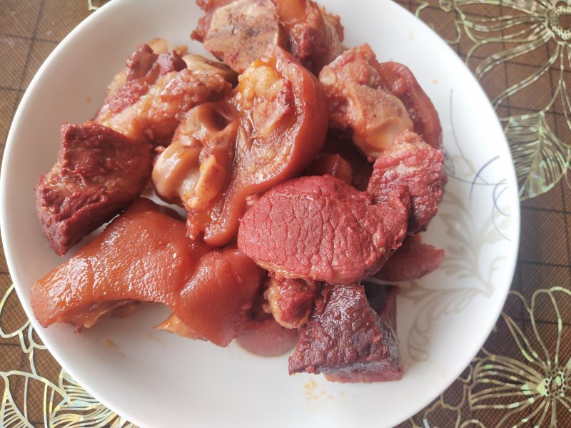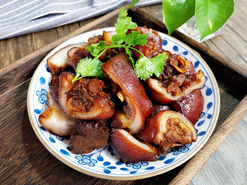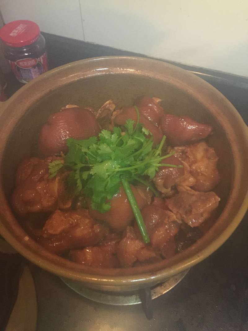 8:这是炖好的猪蹄,可以开大火收一下汁。我们家吃肉喜欢有嚼劲的,所以担心收汁太烂就没有。留点汤汁泡着猪蹄,第二次吃会更入味。