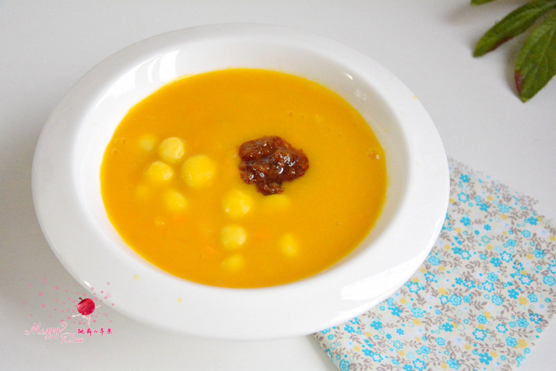糯香南瓜羹是一道家常甜汤,以南瓜为主料,搭配糯米或糯米粉增加浓稠顺滑口感。常见配料包括清水或牛奶(增添奶香)、少量冰糖或白糖调味。部分做法会加入枸杞、红枣点缀,或淋入淡奶油、椰浆提升风味。制作时先将南瓜蒸熟捣泥,与糯米浆同煮至黏稠,最后依个人喜好调整甜度即可,成品色泽金黄、香甜暖胃。