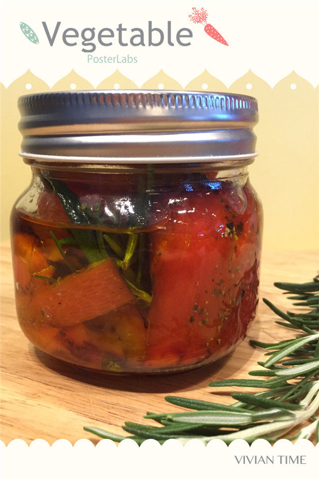 6:把红椒内心的香料也取出,红椒放入干净罐中,再放入新鲜的百里香、迷迭香、蒜头瓣、盐、胡椒、橄榄油。放入冰箱24小时后食用。