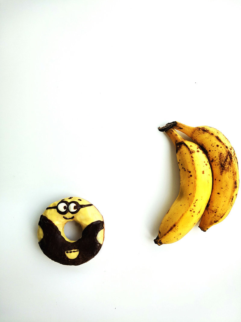 11:将隔水融化的黑巧克力装入剪口的裱花袋中,画上背带裤,眼镜框等即可