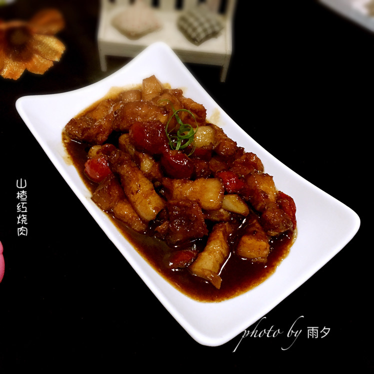 雨夕碎碎念:1、山楂很容易熟的,最后放;2、入山楂,也使肉更加快速的软烂;3、三层肉就是五花肉;