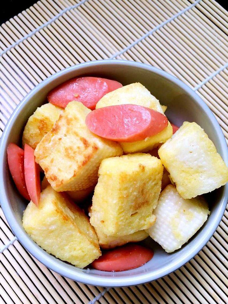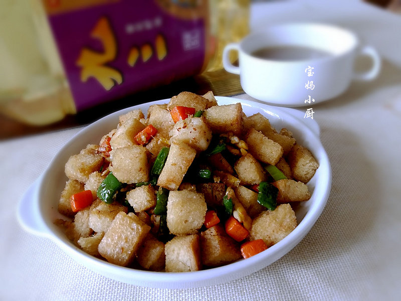 5:简单的炒馒头丁就好了,适合不想做饭时做,馒头要稍微硬点的更好吃,我这个馒头有点软切的丁不好看。