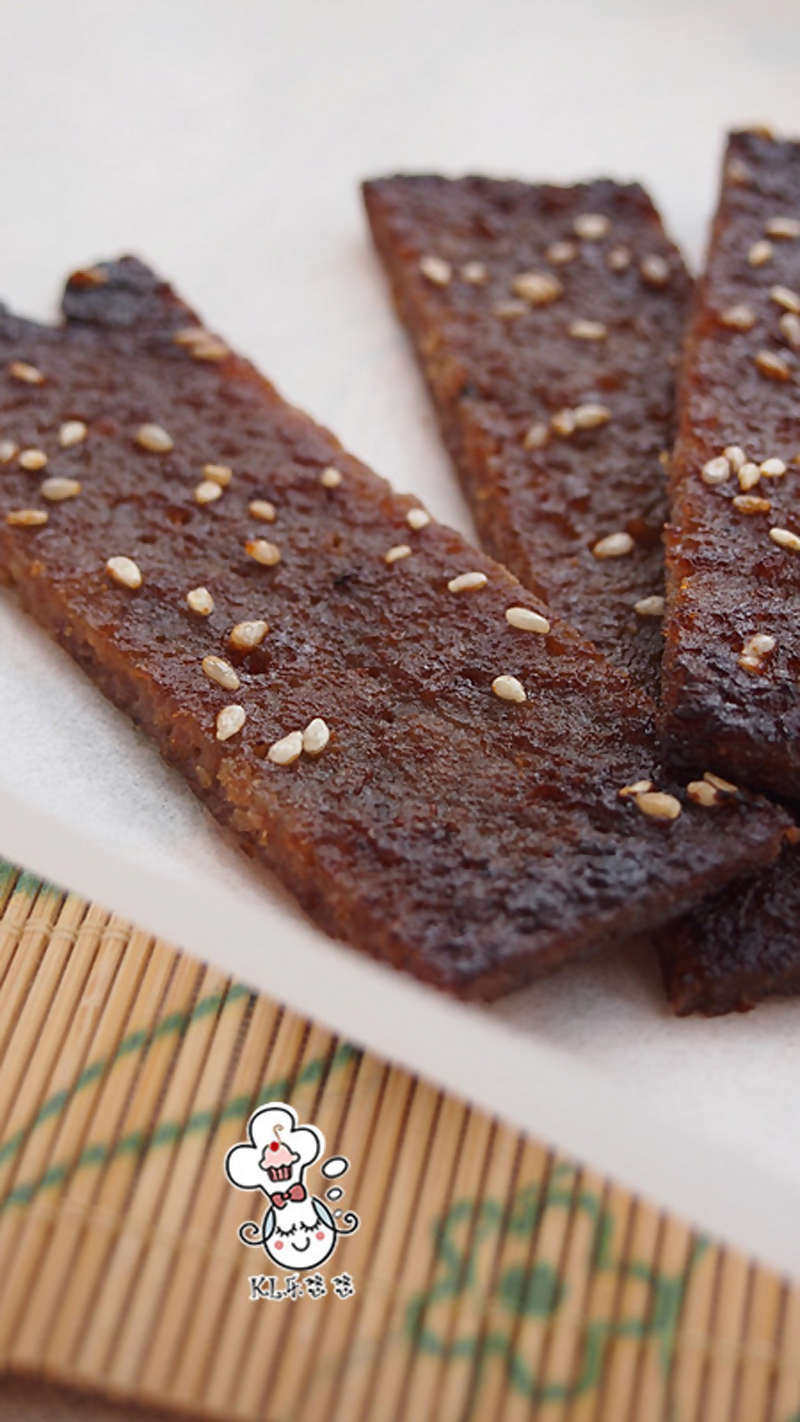 -老抽不能放太多,否则颜色太深。-烤好后边上比较焦的猪肉脯用剪刀剪去即可。