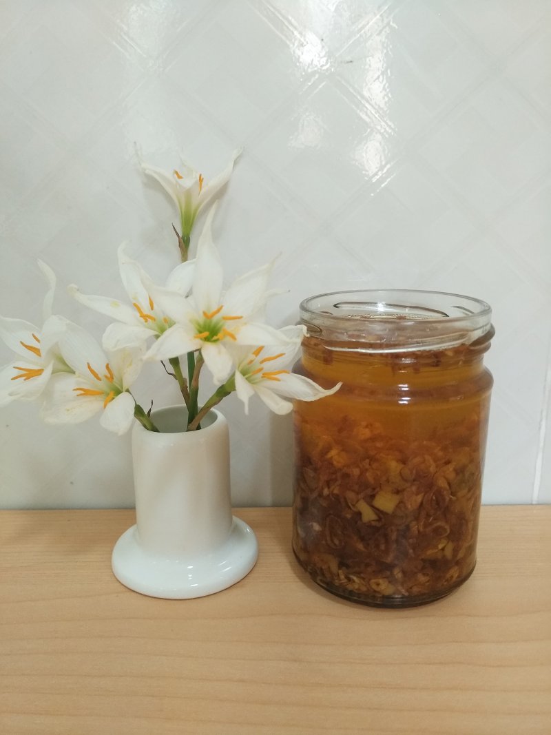 6:待凉至温装入一干净玻璃瓶,盖上盖子。用于拌面、炒饭、做肠粉……都是超级香的!