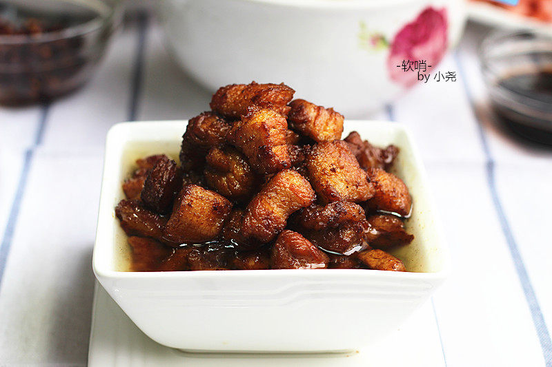 1:猪五花肉洗净去皮,切成2厘米见方的丁;