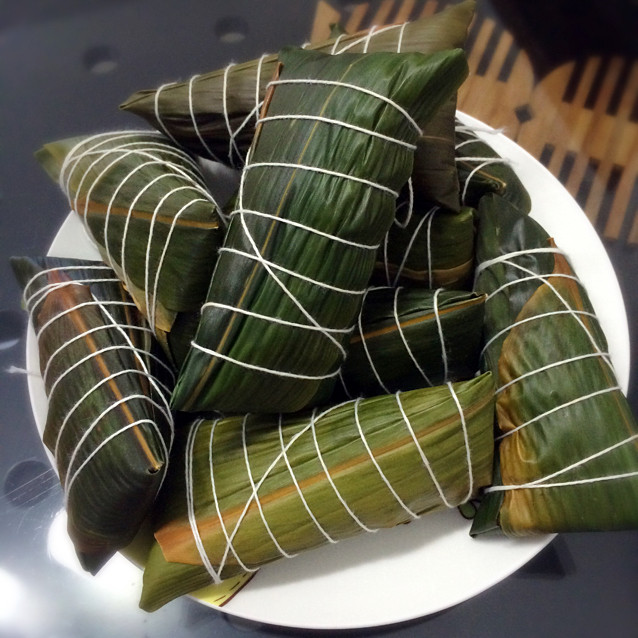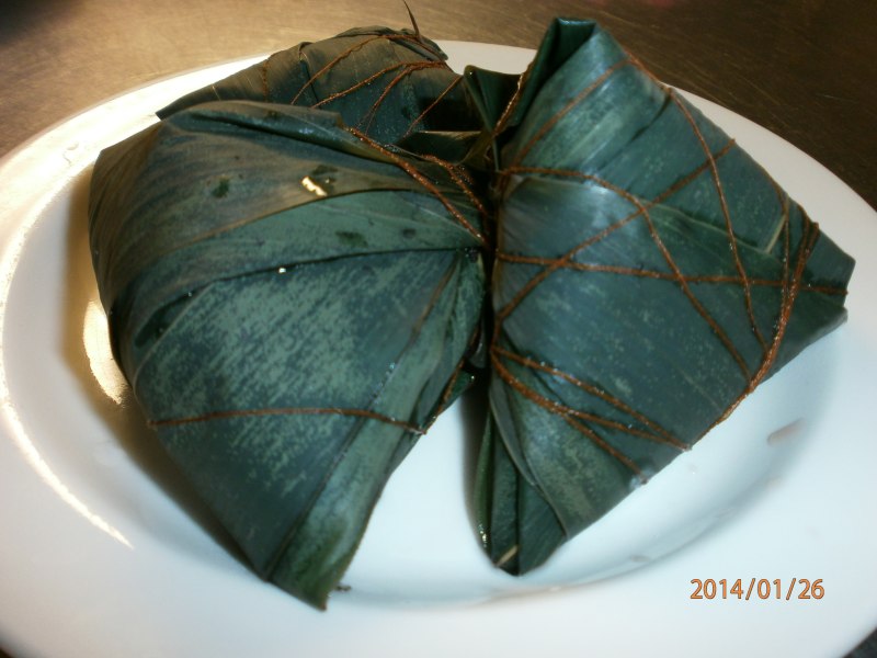 6:包粽子了。包好了,水烧开再放粽子下去煮,煮熟即可。捞出。来吃啦