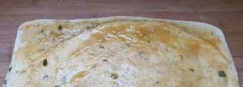 面团发好后,撒点干面粉防粘,轻轻压扁,擀成硬币那么厚的长方形。把油酥均匀抹上去,撒点盐,再铺满葱花。葱花多点少点看你心情,但多放点总没错,香味会更足。抹好后,从两边往中间叠,像叠被子一样,轻轻按实,再擀薄点,饼的层次感就出来了。