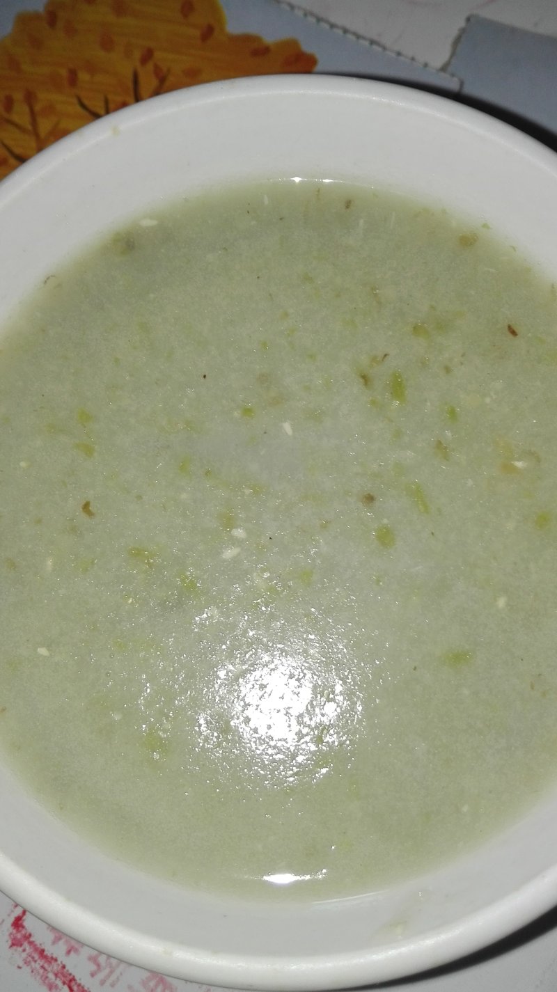 5:煮熟后的绿豆浆越煮越浓稠,最后开小火煮五分钟就可以了