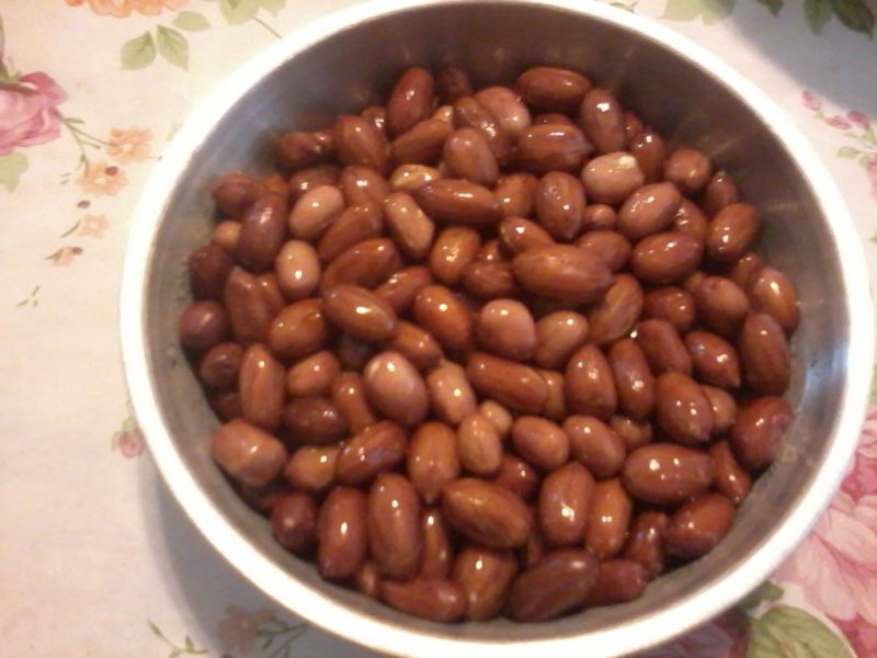 3:当花生米不在发出劈啪声,尝起来没有生花生米的腥味,即可将花生米捞出