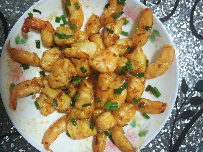 5:一直大火,爆炒均匀,虾色变红,水份炒干,即可