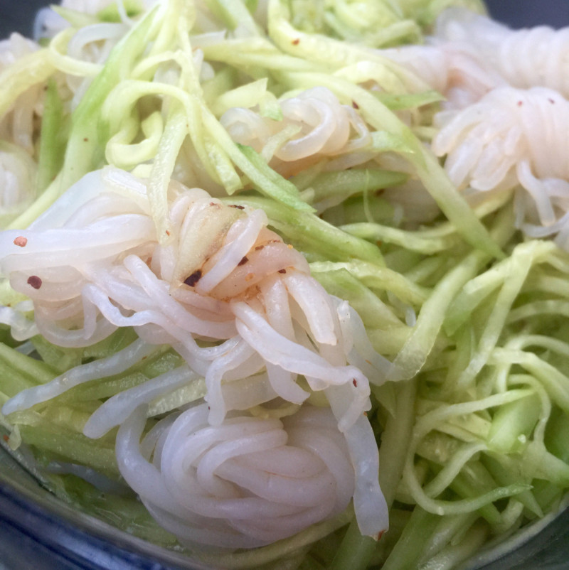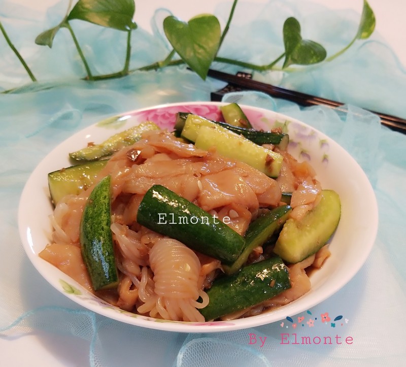 15:把魔芋丝海蜇皮放入黄瓜里。