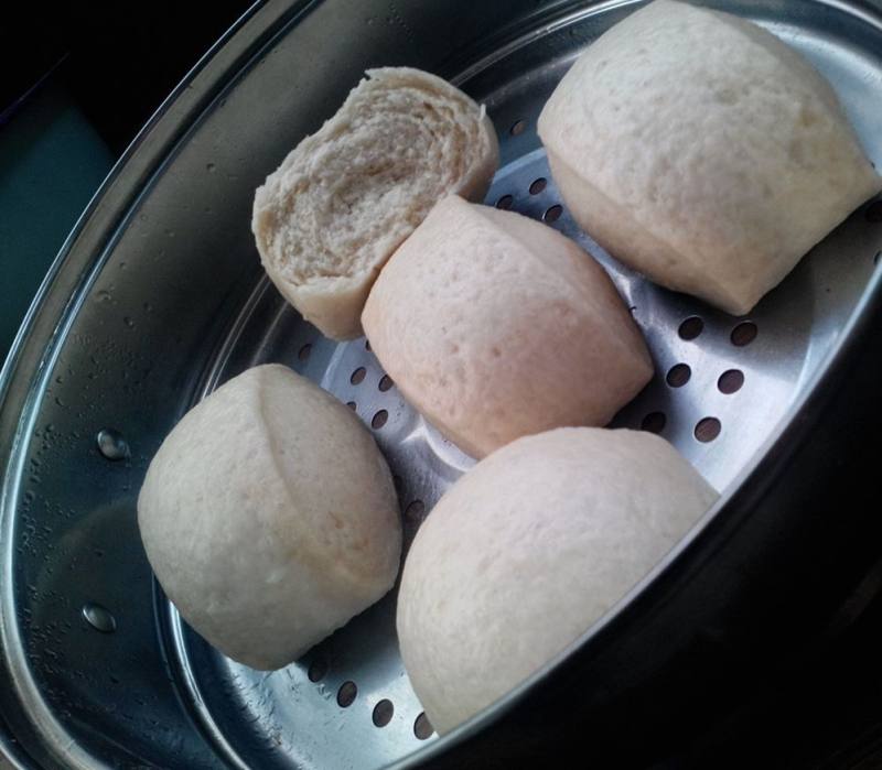 6:打开煤气,先小火蒸至上汽,改大火蒸10分钟左右即可。关火后,不要马上揭盖,再等3、4分钟揭盖,小心蒸汽水不要滴馒头上。