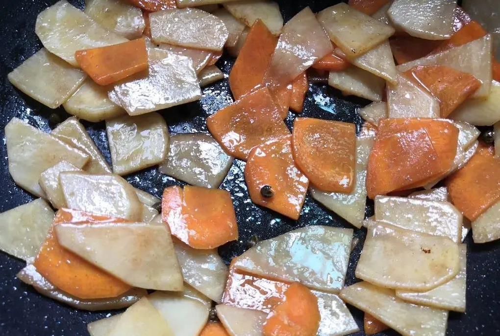 配菜简单又接地气,土豆和红萝卜就行。土豆切大片,红萝卜也切片,洗干净控水备用。这两样配菜不抢猪肝的风头,还能吸点酱香味,吃起来特别搭。土豆淀粉多,炒出来软糯;红萝卜脆甜,增加点嚼劲,颜色也好看,摆盘更好看。