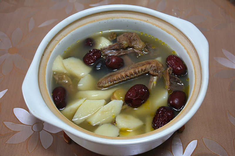 6:排骨小火炖1小时后,下山药继续炖20分钟,放大枣2颗,枸杞适量