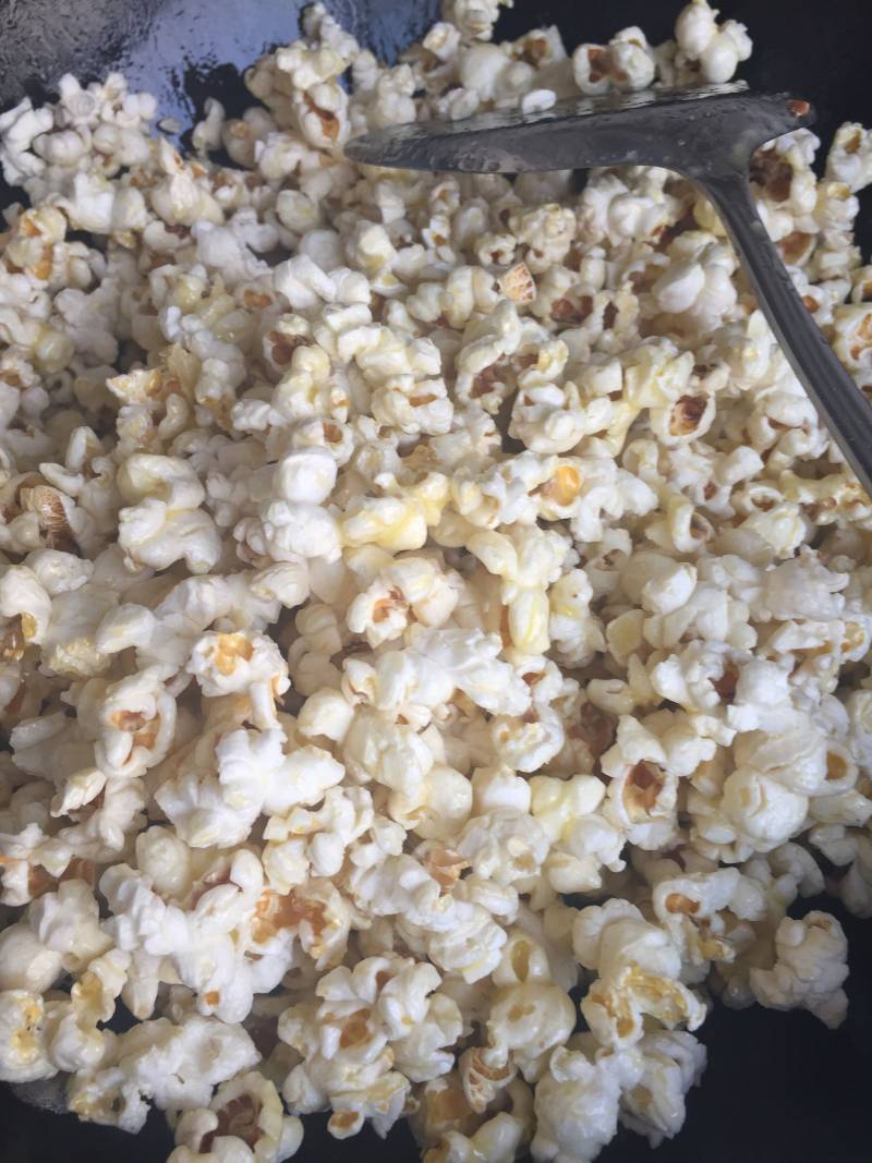 4:把爆好的玉米花倒出锅