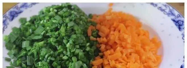 胡萝卜也得好好收拾。洗干净后,先切成薄片,再改刀成细条,最后切成小丁。别嫌麻烦,切得越细,混在煎饼里口感越好。切好的胡萝卜丁直接倒进装韭菜的盘子里,颜色搭在一起,看着就让人有胃口。