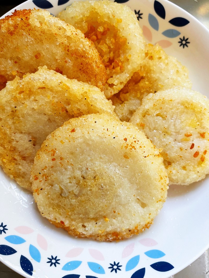 9:这是用油炸的糍粑,外面酥酥的,里面绿豆馅儿咸香可口。