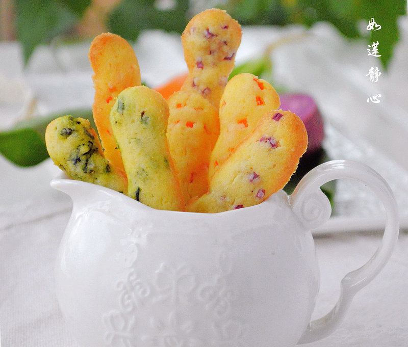 13:分别加入胡萝卜、紫薯、和烤干的菠菜。