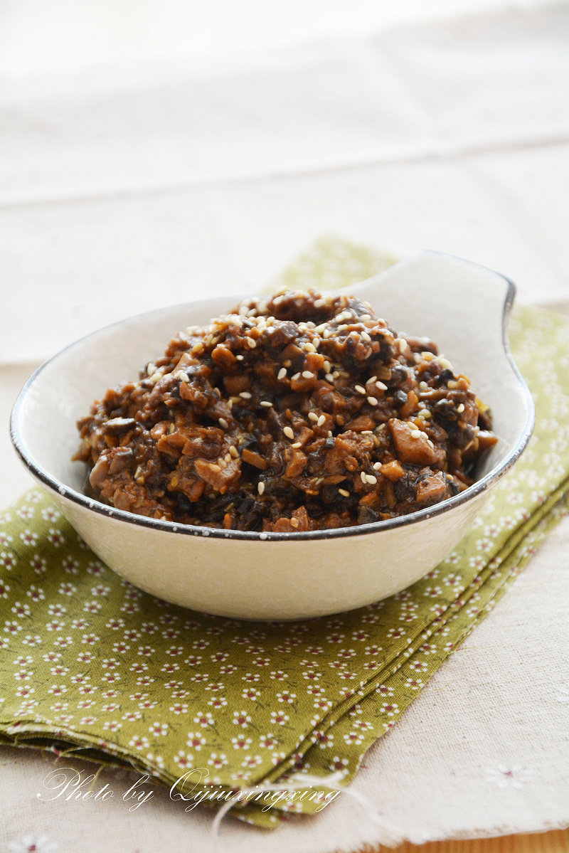 因为豆瓣酱本身就挺咸的,所以我就没有加盐.炒好的蘑菇酱可以装在密封容器中,冷藏于冰箱,一个星期内解决掉.