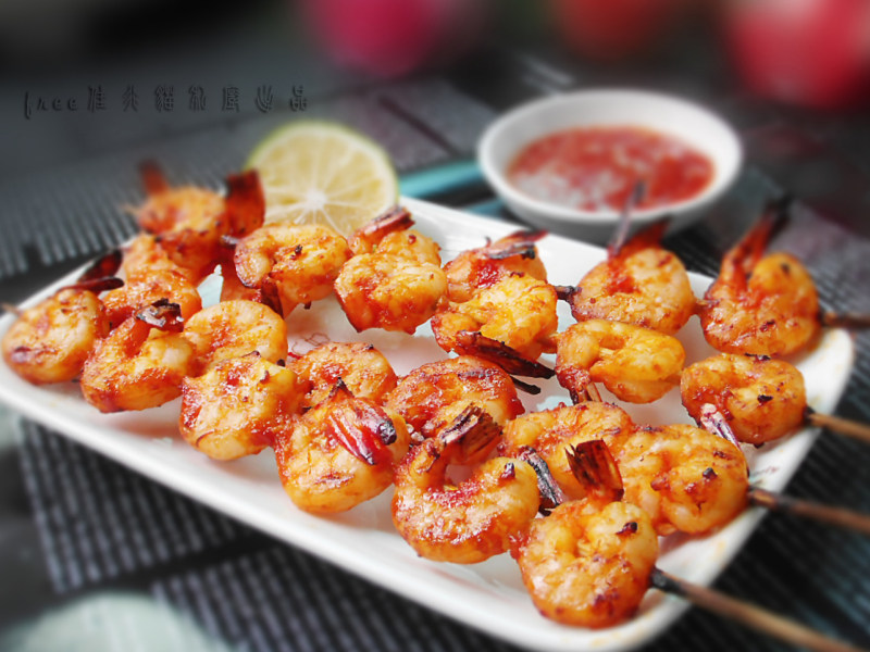 1:海虾买回来后突然有种要吃烤虾的感觉所以就立即行动起来,将虾洗净沥干水份备用,竹签用水浸泡一会儿洗净备用
