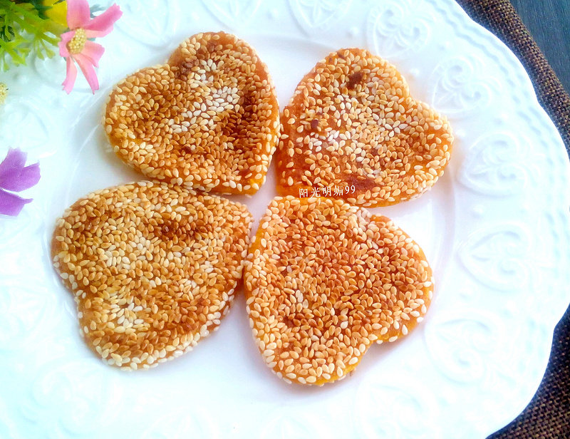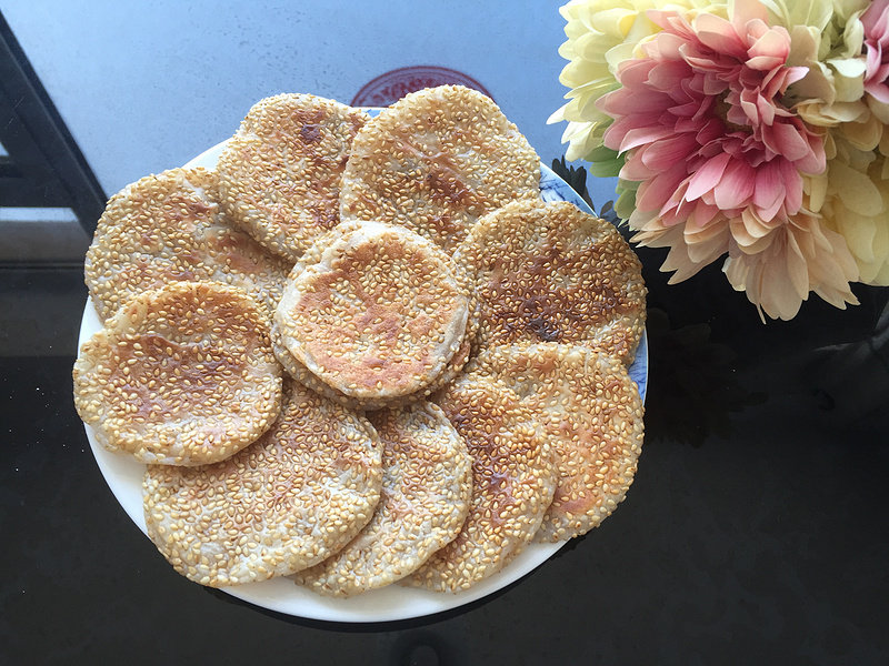 8:翻面烙(最好用电饼铛烙,不用翻面,芝麻不脱落)