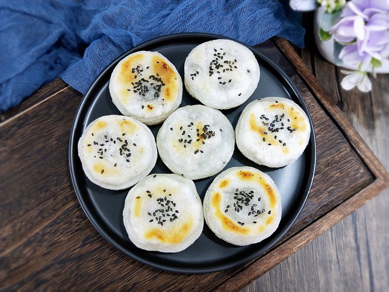 7:煎至底部饼皮颜色变深,呈现透明状翻面,两面煎好后,使用锅铲在表面轻压能轻轻回弹即可。