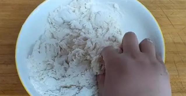 面团是这饼的魂儿。拿个大碗,把300克面粉倒进去,慢慢加入180毫升温水,边加边搅。搅成一团碎碎的面絮后,用手揉,揉到面团光滑软和,像小孩脸蛋儿似的就行。这一步不费劲,但得有点耐心,揉好了饼才筋道。