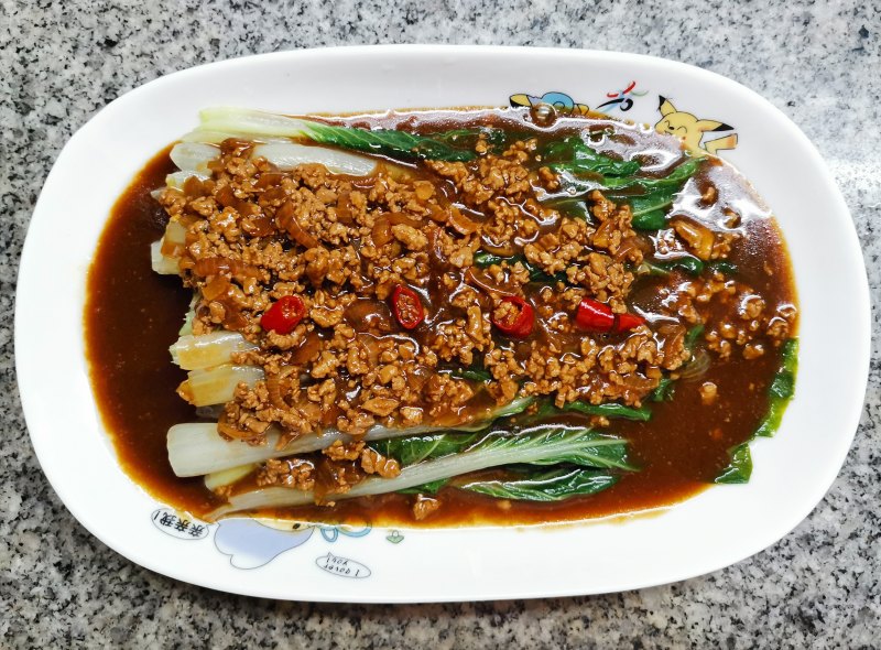 11:小白菜搭配着肉末的香味,非常好吃下饭。