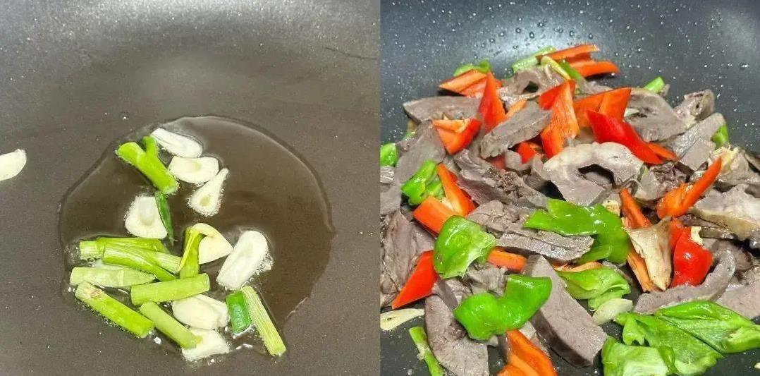 第二天才是重头戏。热锅凉油,蒜末丢进去“滋啦”一响,香气瞬间炸开,厨房都跟着热闹起来。猪心片下锅,翻炒几下,青红椒跟着入场,红绿相间,活像一盘从美食节目里蹦出来的菜。火开大,锅气一冲,那香味简直能把邻居都勾过来!